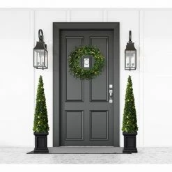 Fraser Hill Farm 2-Ft. Boxwood Ball Topiary With Black Pot And Warm White LED Lights