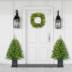 Fraser Hill Farm 2-Ft. Porch Tree In Black Pot With Red Berries And Warm White Lights