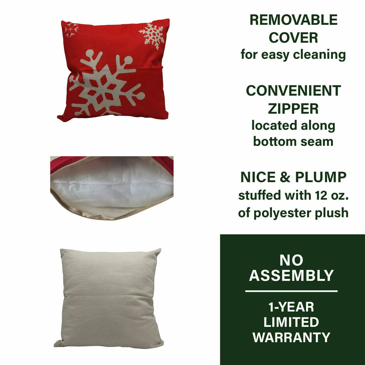 - Pillow lining is stuffed with 12 ounces of polyester plush for your comfort – toss it on the couch for a festive touch
