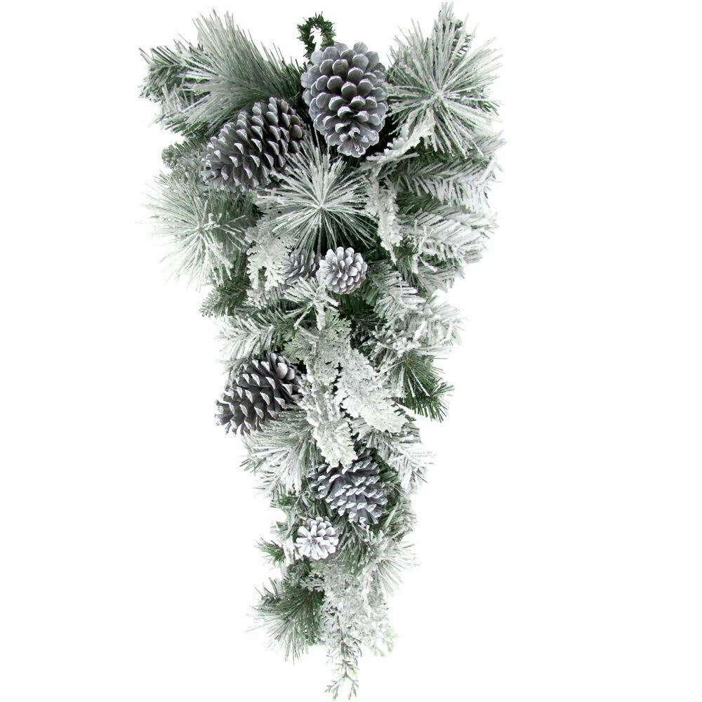 - Artificial snow-flocked teardrop door hanging