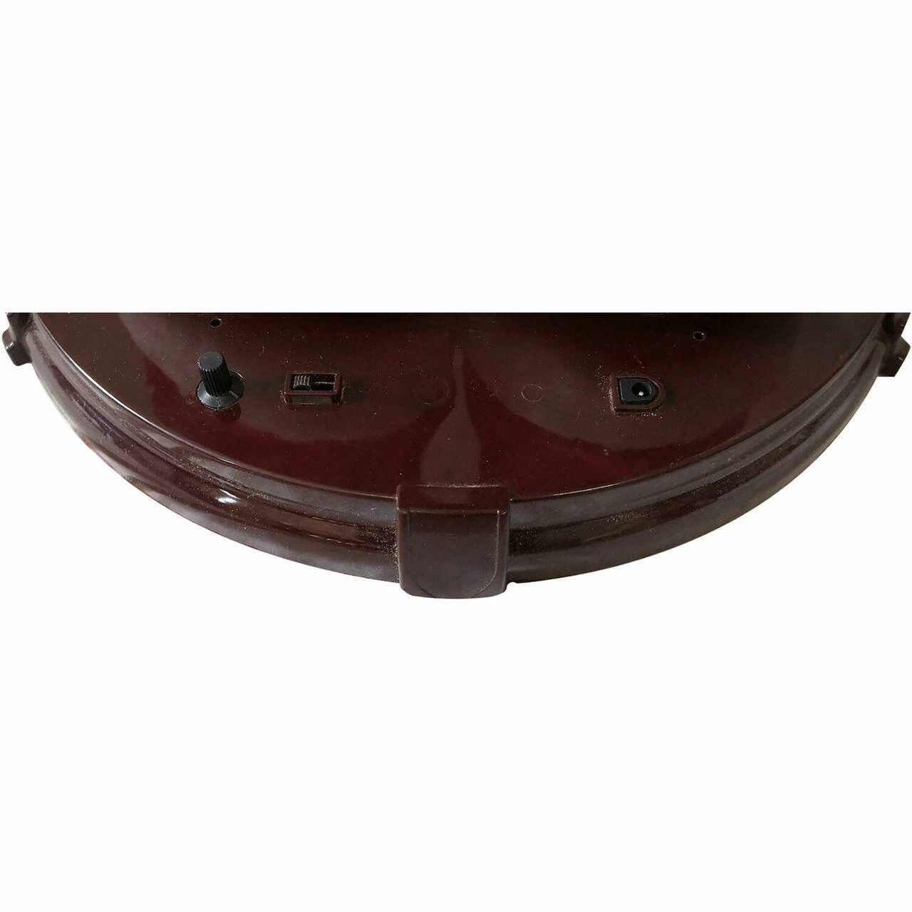 - Music volume is approximately 75 dBs and can be adjusted with the volume knob located at the back of the base