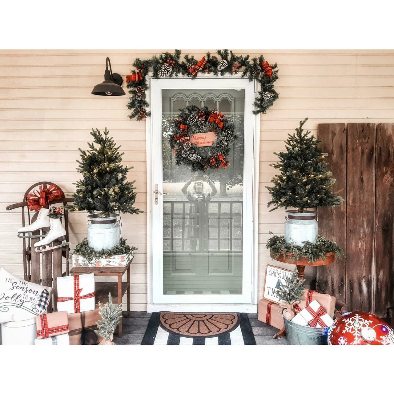 - Oversized pinecones, berries and plaid bows scattered throughout