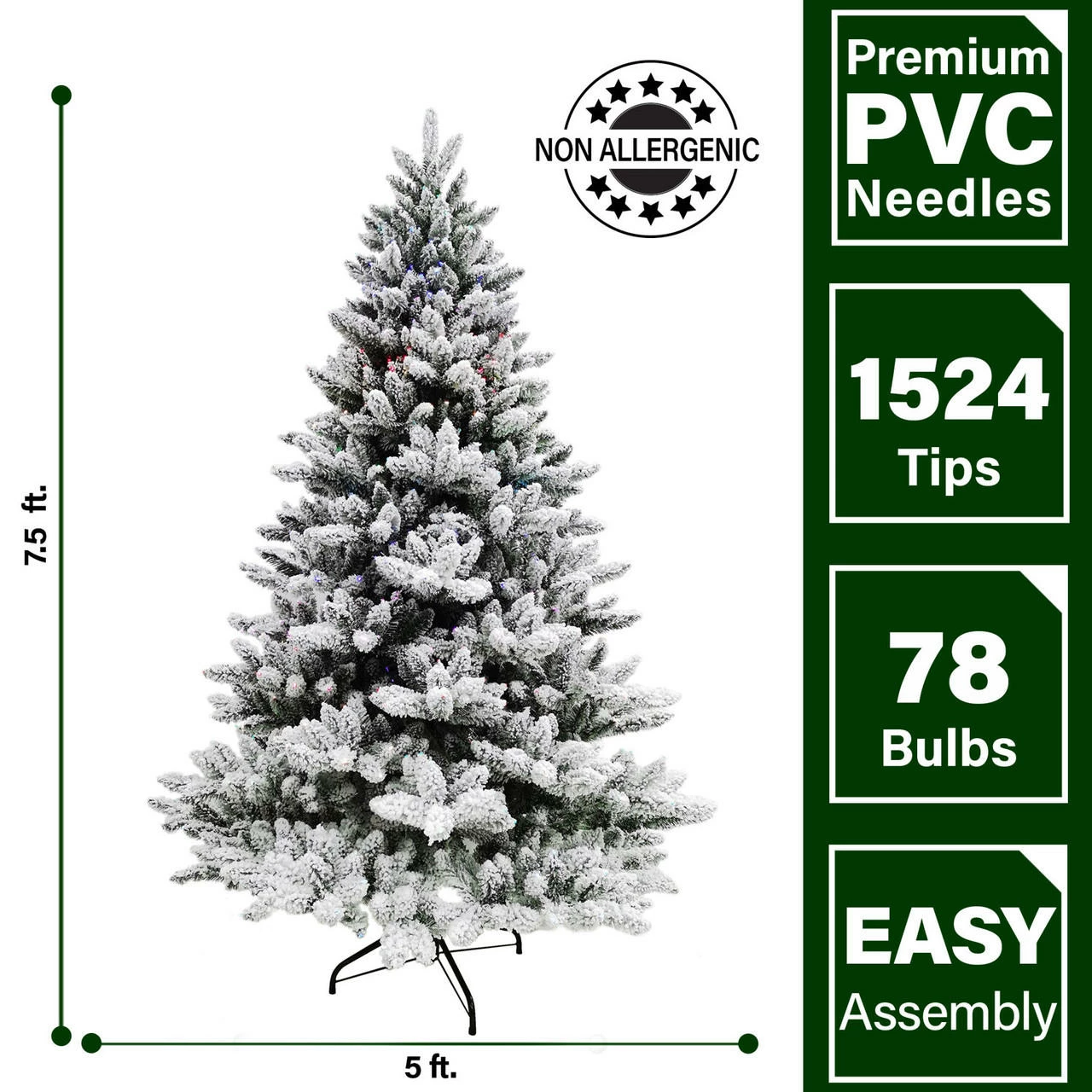 - 7.5-ft. tall snow-flocked fiber optic tree with metal tree stand ‘? easy 3-piece assembly