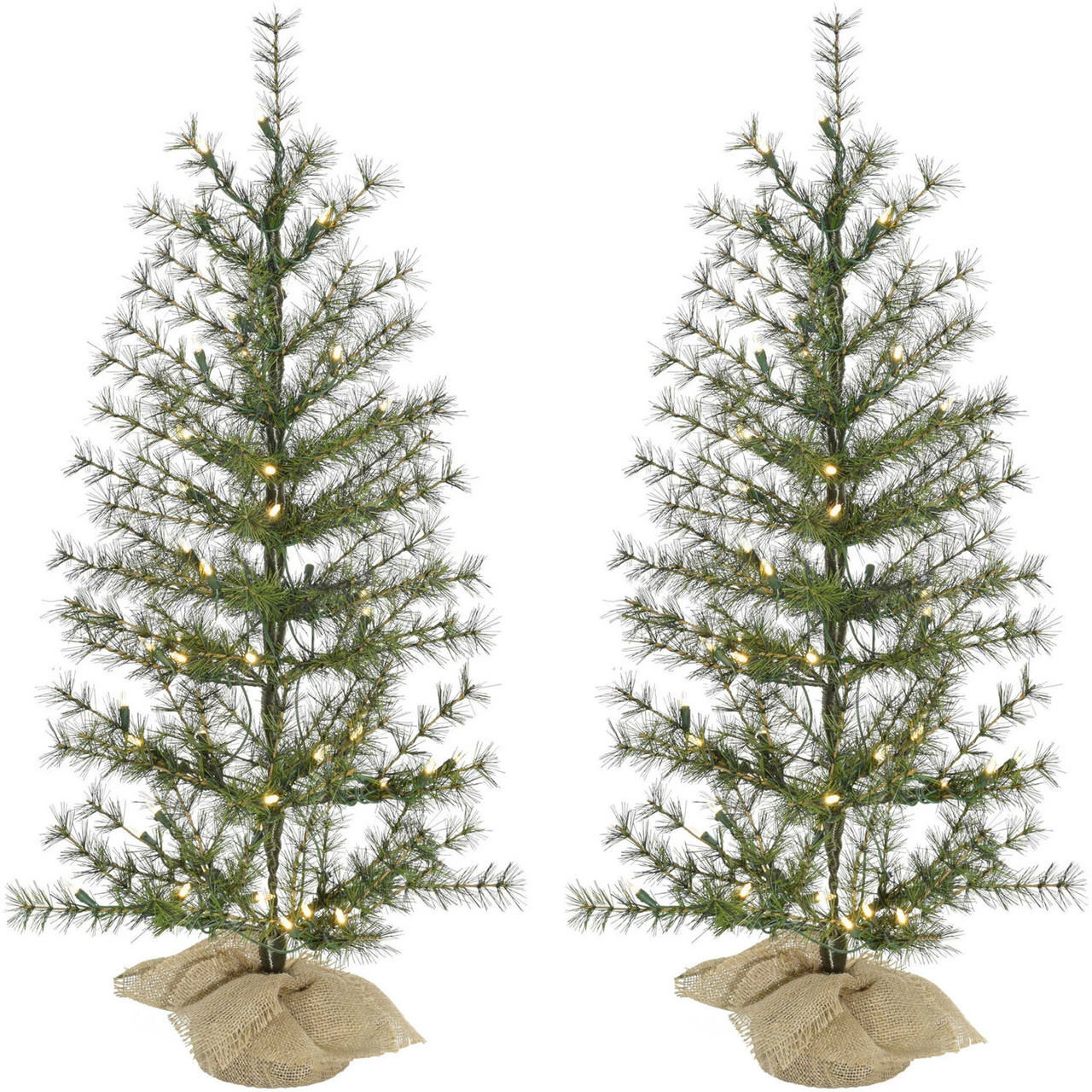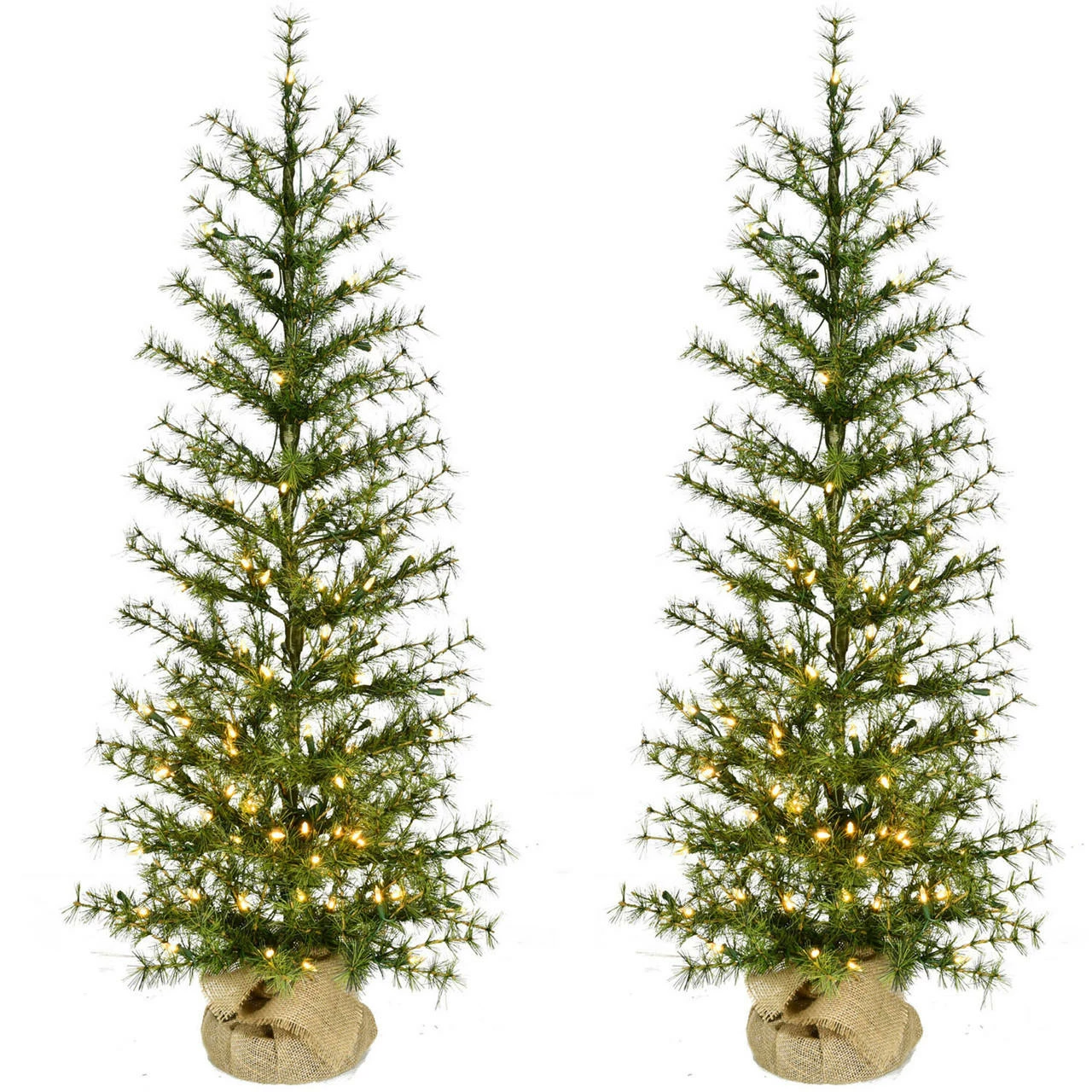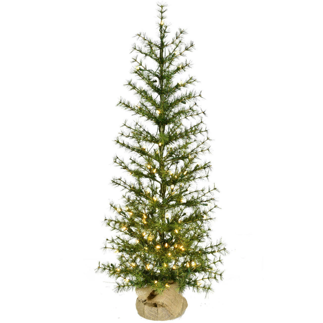 Fraser Hill Farm’s Farmhouse Fir artificial Christmas tree features lifelike foliage, and an all-metal hinged branch construction for strength and durability. Each model is specially crafted using the finest materials to not only look realistic, but to provide you with many seasons of use and enjoyment as well. The tree needles are constructed out of non-allergenic and flame-retardant materials then painted multiple hues of green so no two are exactly alike. A burlap bag is wrapped around the base for a rustic, freshly cut look. It is pre-strung with a system of evenly distributed, warm white bulbs for your convenience. These details create the look of a natural tree that requires hardly any maintenance. With the Farmhouse Fir Christmas tree, simply unfold out of storage and decorate!