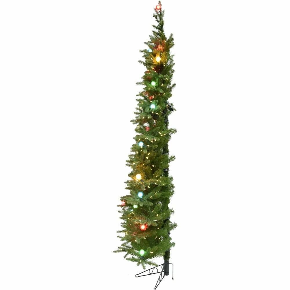 The Green Christmas Half Tree is an Artificial Christmas Tree from Fraser Hill Farm. This model features a slim natural-shaped half silhouette. This tree can fit seamlessly next to a fireplace, in a corner of a room, on a front porch, and so many other hard to decorate places. Fraser Hill Farm produces the most realistic artificial trees in the market and imagine never having to shop, chop, and pay for another natural tree again. With this half Tree, simply unfold out of storage and decorate! Leave your old tangled string lights behind this year. This model is prestrung with clear LED string lighting and frosted G40 multicolored lights that are sure to make your tree shine and illuminate any room. The tree needles are constructed out of non-allergenic and flame-retardant materials to keep your family safe during the holiday season. These details create the look of a natural tree and require less maintenance. Designed to last, this Green Christmas Half tree is sure to provide more convenience and ease to your holiday season, year after year.