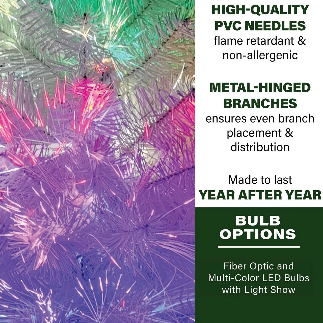Dazzle and delight your family, friends, and guests this Christmas with a magical fiber optic tree from Fraser Hill Farm. Watch in amazement as LED lights dance across a rainbow of colors, creating a unique light show all season long. This 2-ft. white potted fiber optic tree features 12 multi-color LED bulbs with 16 light functions set on a timer for hassle-free enjoyment. Fifty high-quality PVC needle tips create a full, lush tree you will enjoy year after year. Perfect for your foyer or tabletop! Never have to shop, chop, or water another tree again! Put away the vacuum, prop up your feet, and enjoy a one-of-a-kind light show in the comfort of your home.