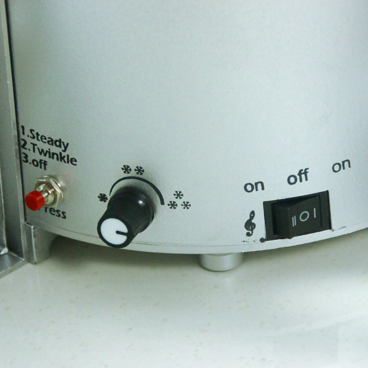 - Self-containing snow function has adjustable speeds using a dial on the base