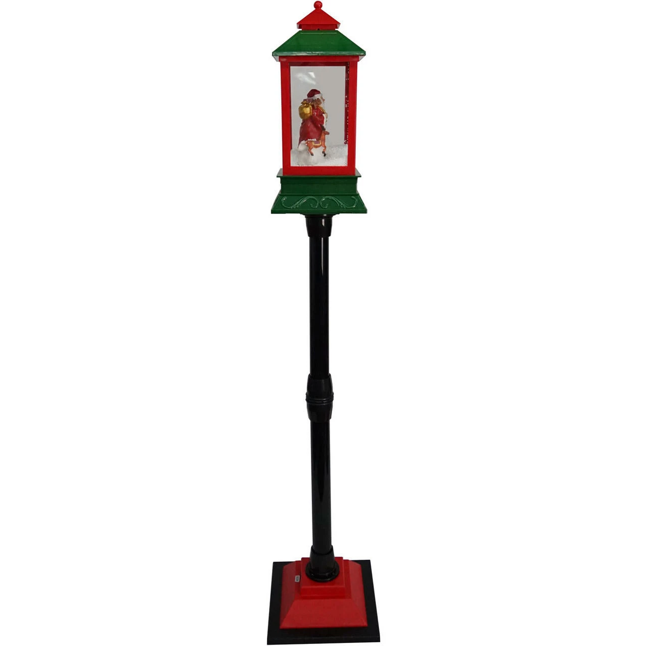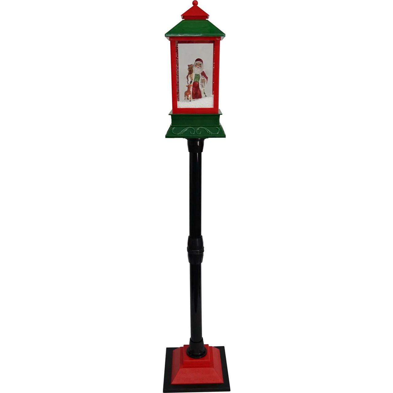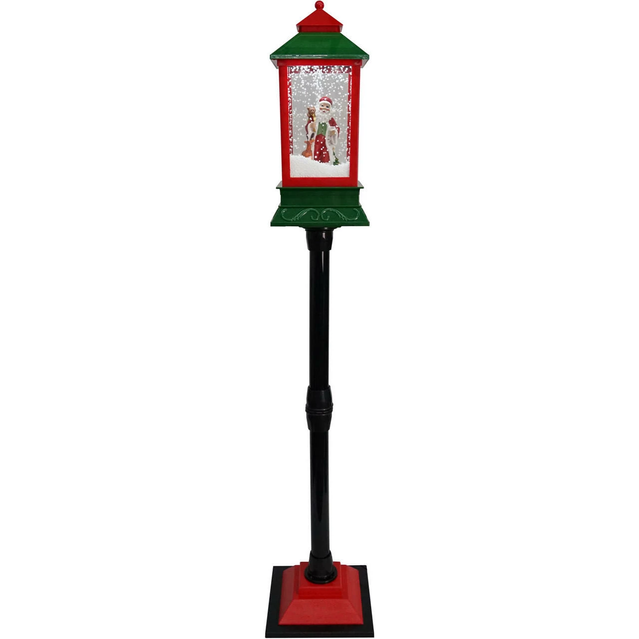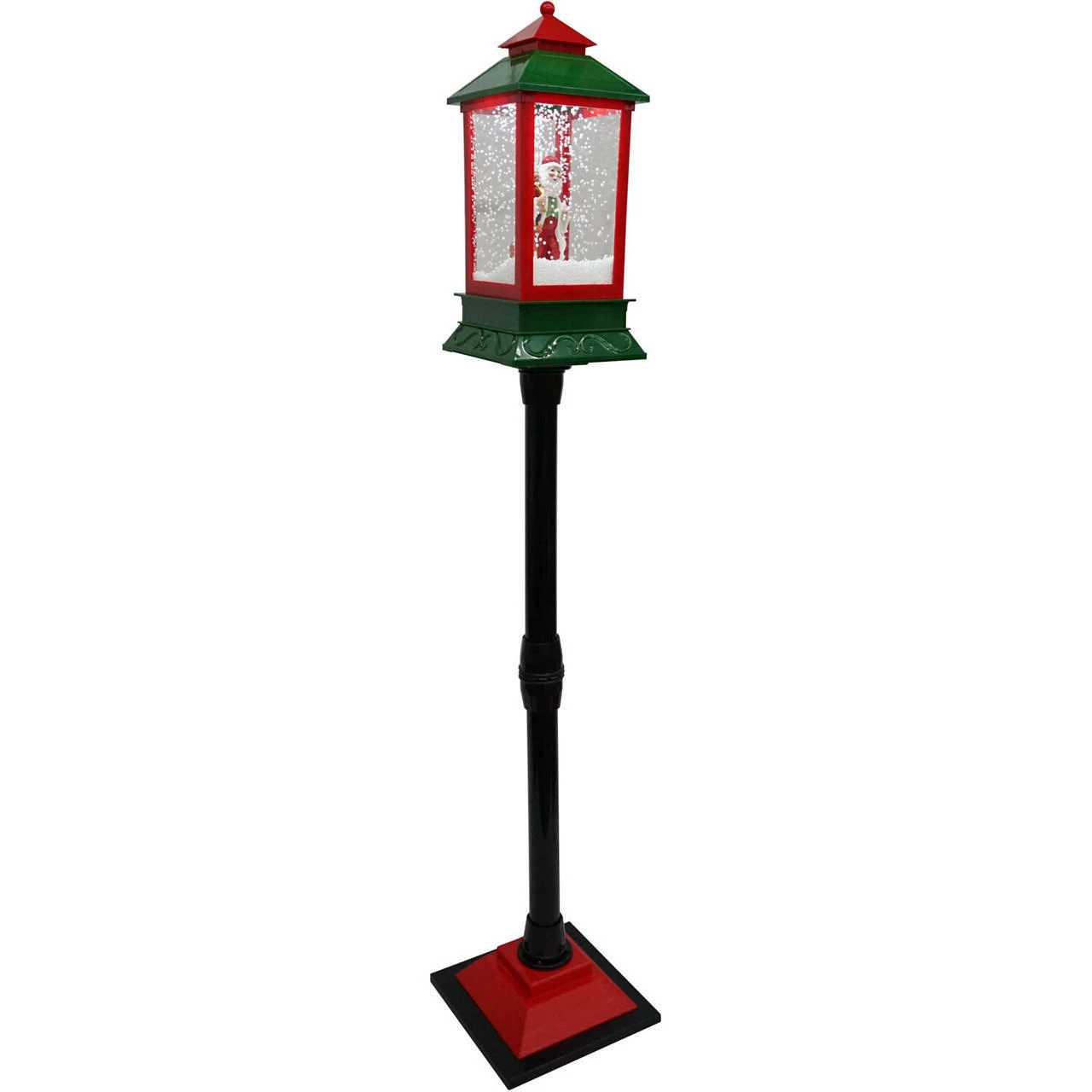 Capture the magic of falling snow with this 49-inch musical mini street lamp from the Let It Snow series by Fraser Hill Farm, where all products produce flurries of faux snow that fall over various holiday scenes. Sparkling white LED lights illuminate the polyfoam beads cascading over Santa Claus. Three popular Christmas tunes (Jingleย Bells, Weย Wishย Youย aย Merryย Christmas, and Oh!ย Christmasย Tree) play randomly while the artificial snow flutters inside the lantern. You can enjoy the lights and snowfall with or without music. This unique snowy lamp post will help create a magical winter wonderland on your covered porch near the doorway or anywhere inside your beautiful home. Plug it in, and let it snow, let it snow, let it snow!