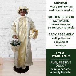 Fraser Hill Farm 58-In. Dancing African American Mrs. Claus W/ Hooded Cloak And Basket, Life-Size