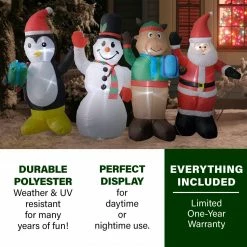 Fraser Hill Farm 4-Ft. Tall Pre-Lit Inflatable Penguin, Snowman, Reindeer, and Santa Friends