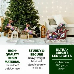 Fraser Hill Farm Oversized D?cor W/ LED Lights, African American Santa Sleigh, Reindeer 3-Pc Set