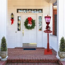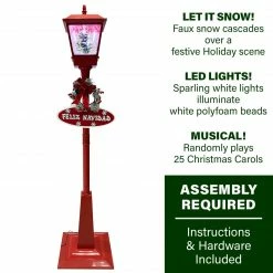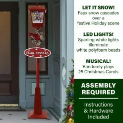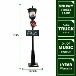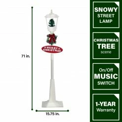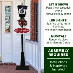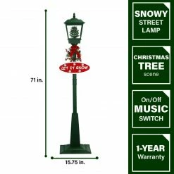 Fraser Hill Farm Let It Snow Series 71-In. Square Street Lamp W/ Tree, Animated Musical Snow, White
