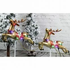 Fraser Hill Farm Santa Sleigh And Flying Reindeer 3-Piece Set W/ Long-Lasting LED Lights