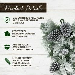 Fraser Hill Farm 34″ Round Christmas Green Pine Wreath Trimmed W/ Magnolia Leaves, Pine Cones