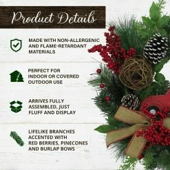 Fraser Hill Farm 24-in. Christmas Wreath W/ Pinecones, Burlap Bows And Wooden Truck Decoration