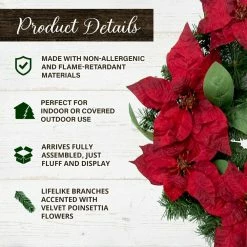 Fraser Hill Farm 24-in. Christmas Wreath W/ Poinsettia Bloom, Bow, & Merry Christmas Wooden Sign